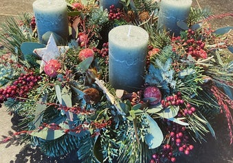 Een greep uit de kerststukken van vorige workshops